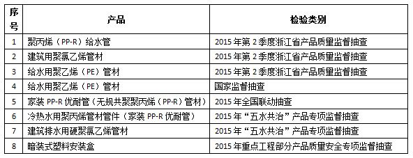In 2015, eight national and provincial supervision in selectiving examination, tonzo production of pp-r pipe resistance, domestic outfit polypropylene (pp-r) feed pipe, PVC pipe used in construction, water supply with polyethylene (PE) pipe, sampling percent of pass is up to 100%.