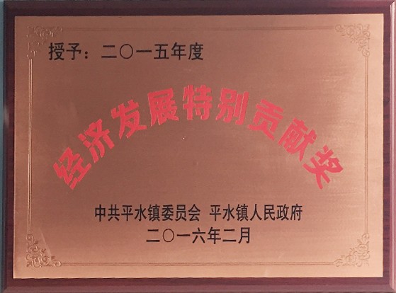 With outstanding performance in 2015, tonzo made a great contribution to the development of pingshui local economy and won the special contribution award for the economic development of the town in 2015