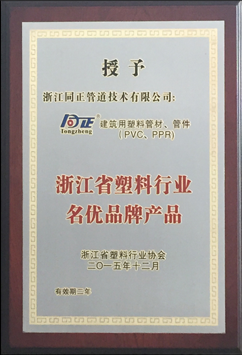 Tongzheng construction plastic pipe, pipe fittings (PVC, pp-r), awarded zhejiang plastic industry famous brand products