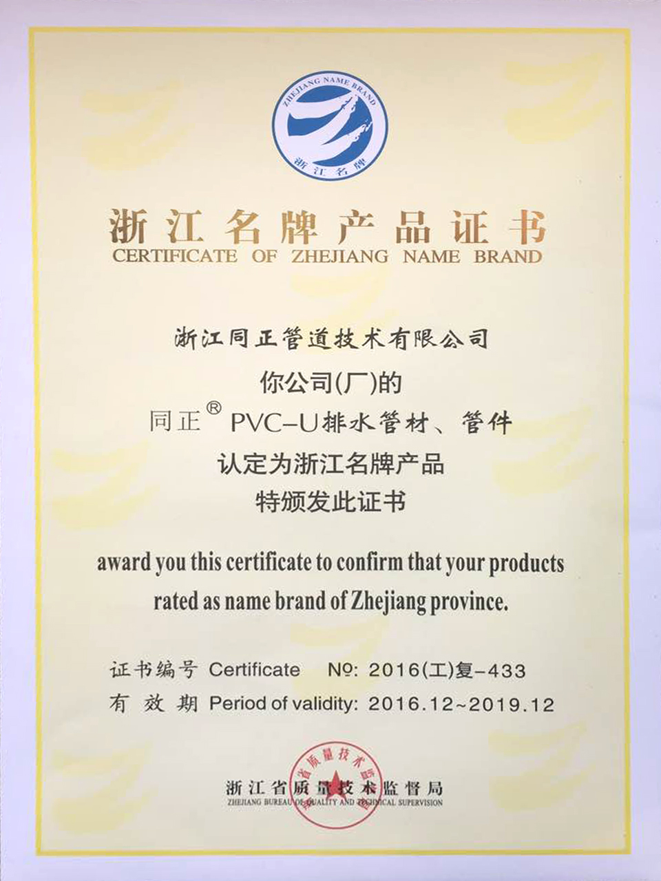 In March 2017, the company passed the review of famous brand products in zhejiang province. This is the third time the company has passed the review of famous brand products.